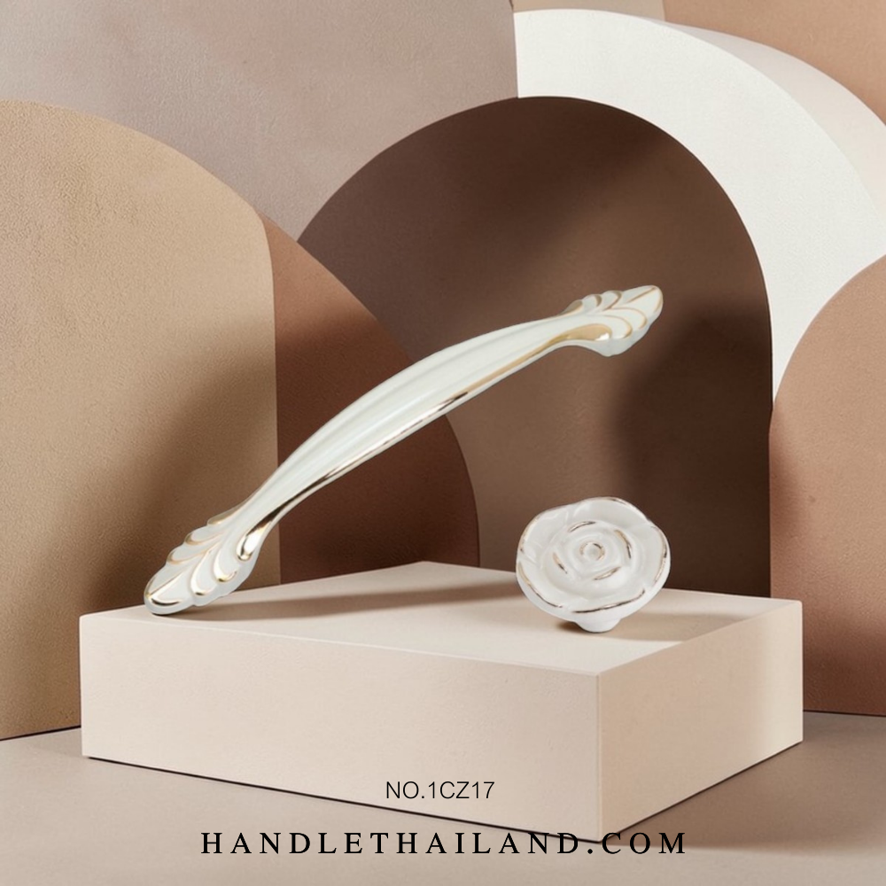 Futuretech เซตมือจับ ปุ่มจับ (เซรามิก) สีขาว-ทอง 1CZ17WHG