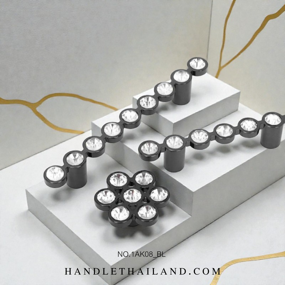 Futuretech เซ็ทมือจับ ปุ่มจับเพชร (ซิงค์) สีดำเงา size 64,96 mm. 1AK08-BL