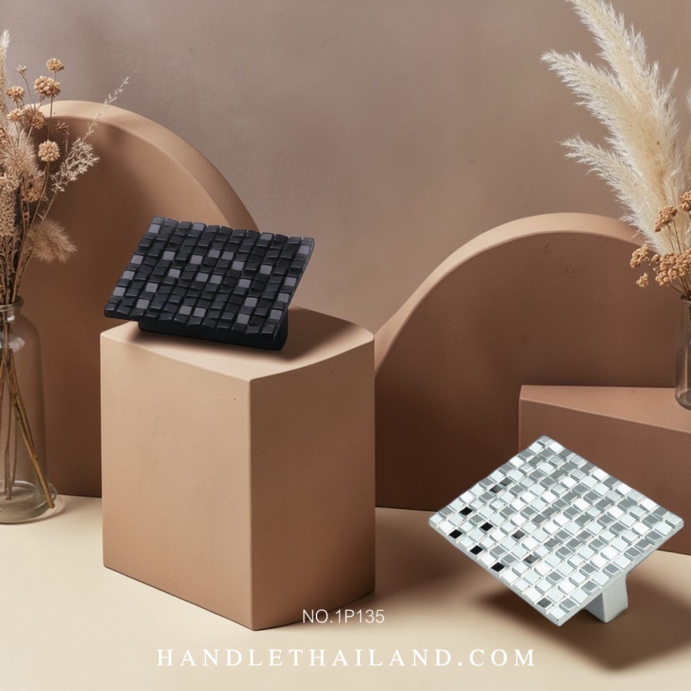 ปุ่มจับลายหมากรุก (ซิงค์) สีดำด้าน,นิกเกิลแฮร์ไลน์ 32 mm. 1P135