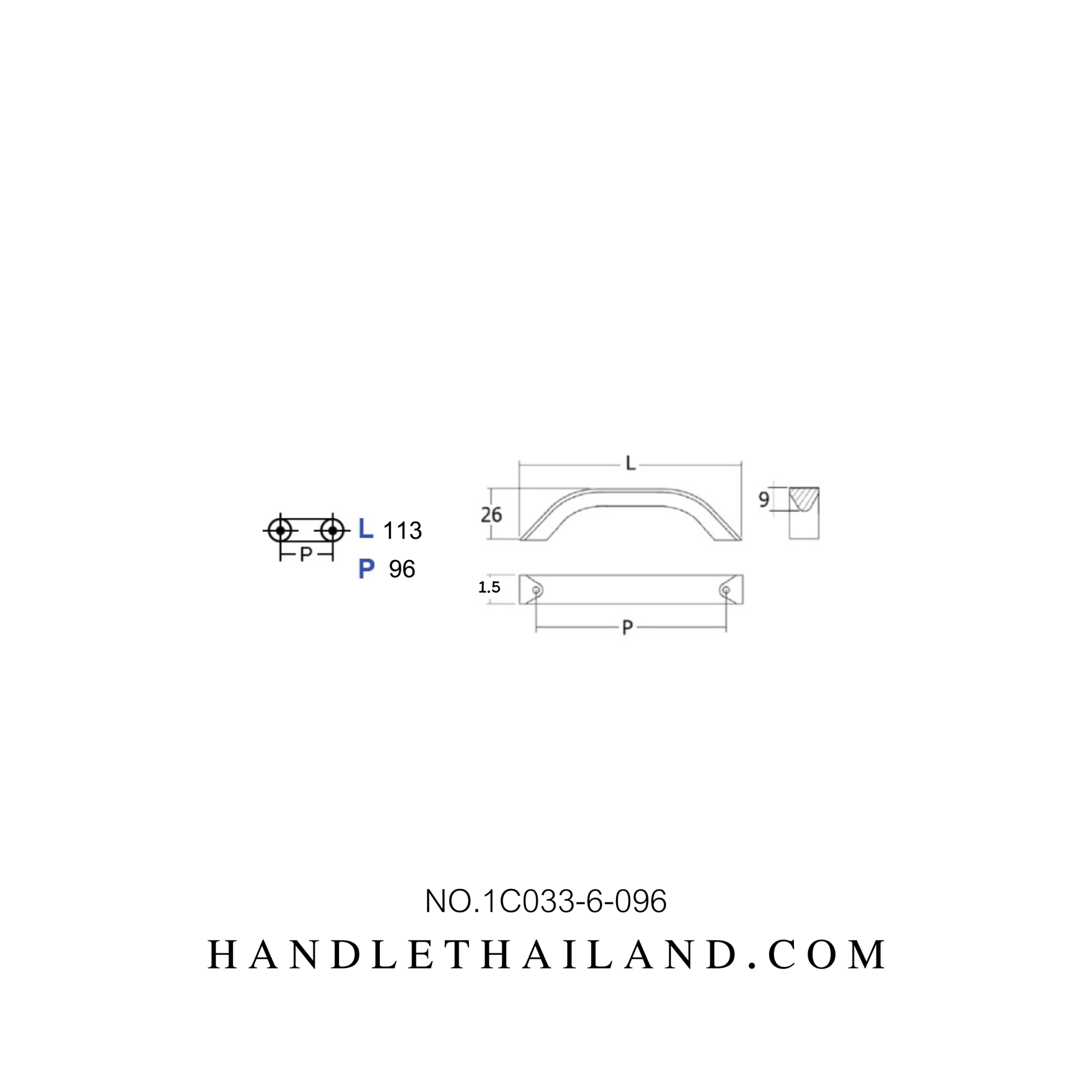 Futuretech มือจับ (อะลูมิเนียม) สีอโนไดซ์ size 96,128,160,192 mm. 1C033-6