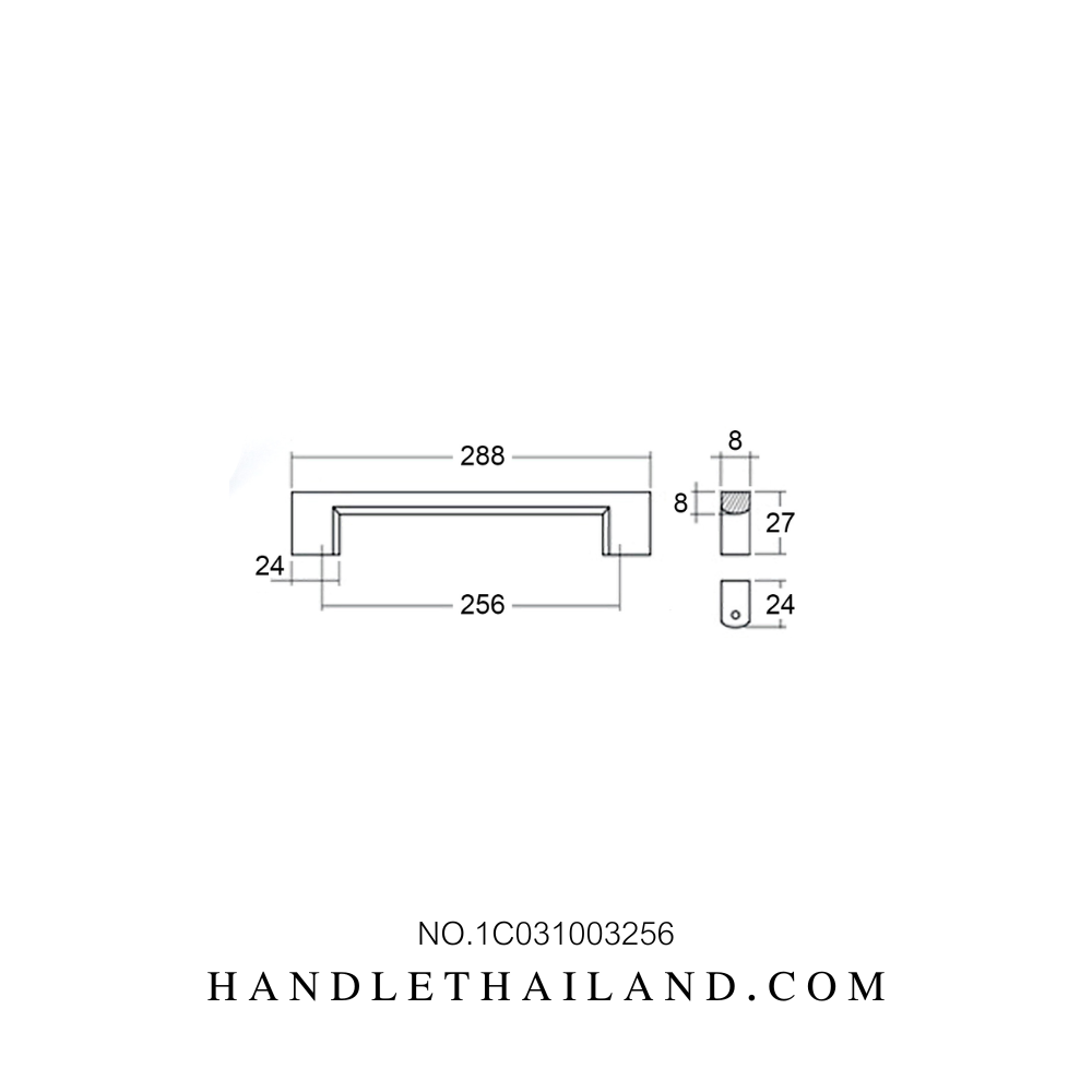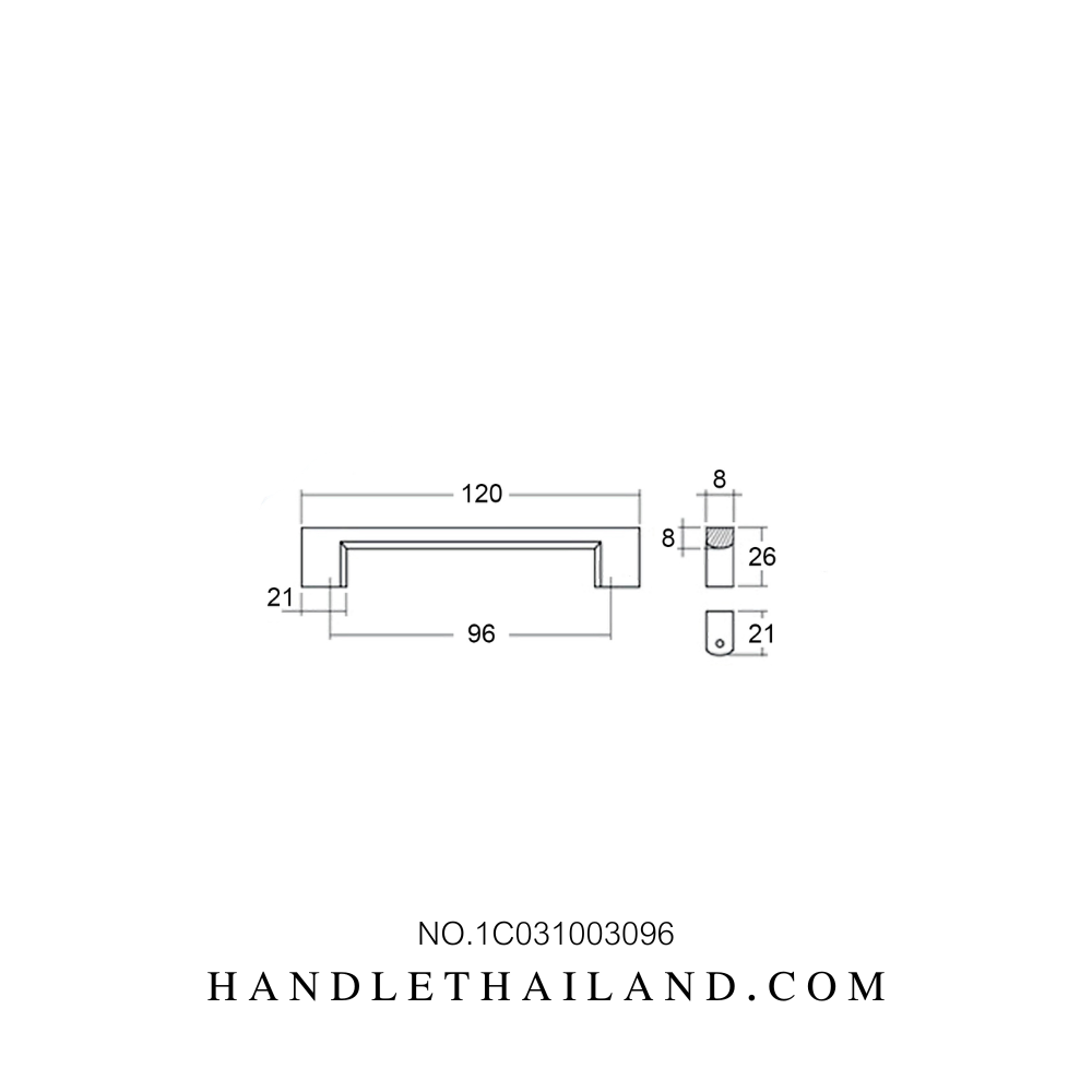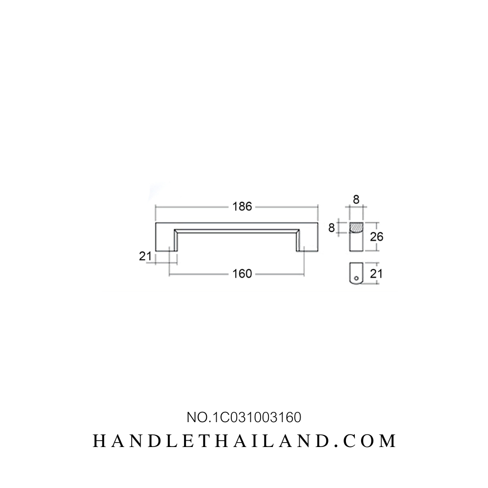 มือจับ (อะลูมิเนียม) นิกเกิลปัดแฮร์ไลน์ size 96,128,160,192,256 mm. 1C031003