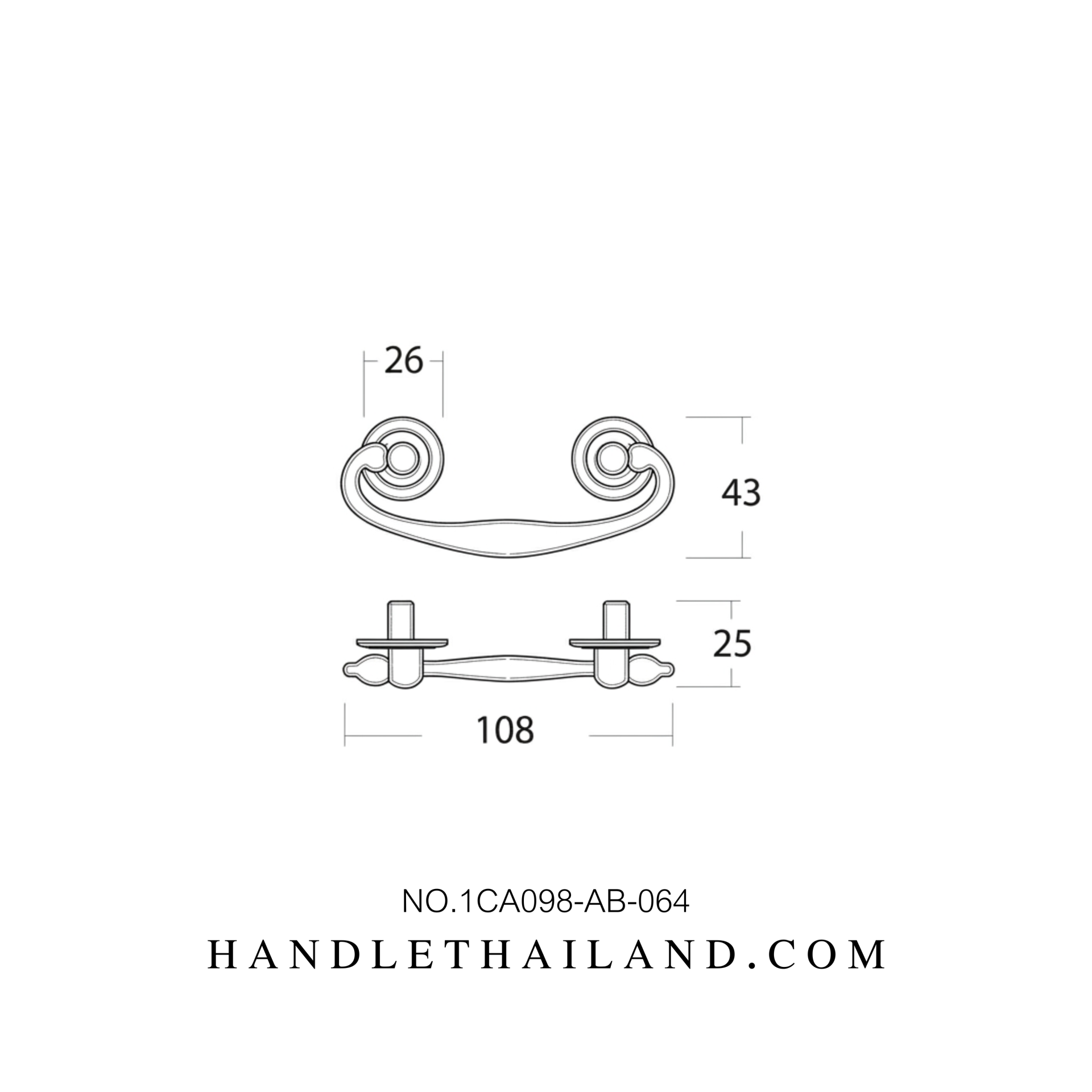 มือจับโบราณ (ซิงค์) สีดำ-เหลือง 64x108 mm. 1CA070