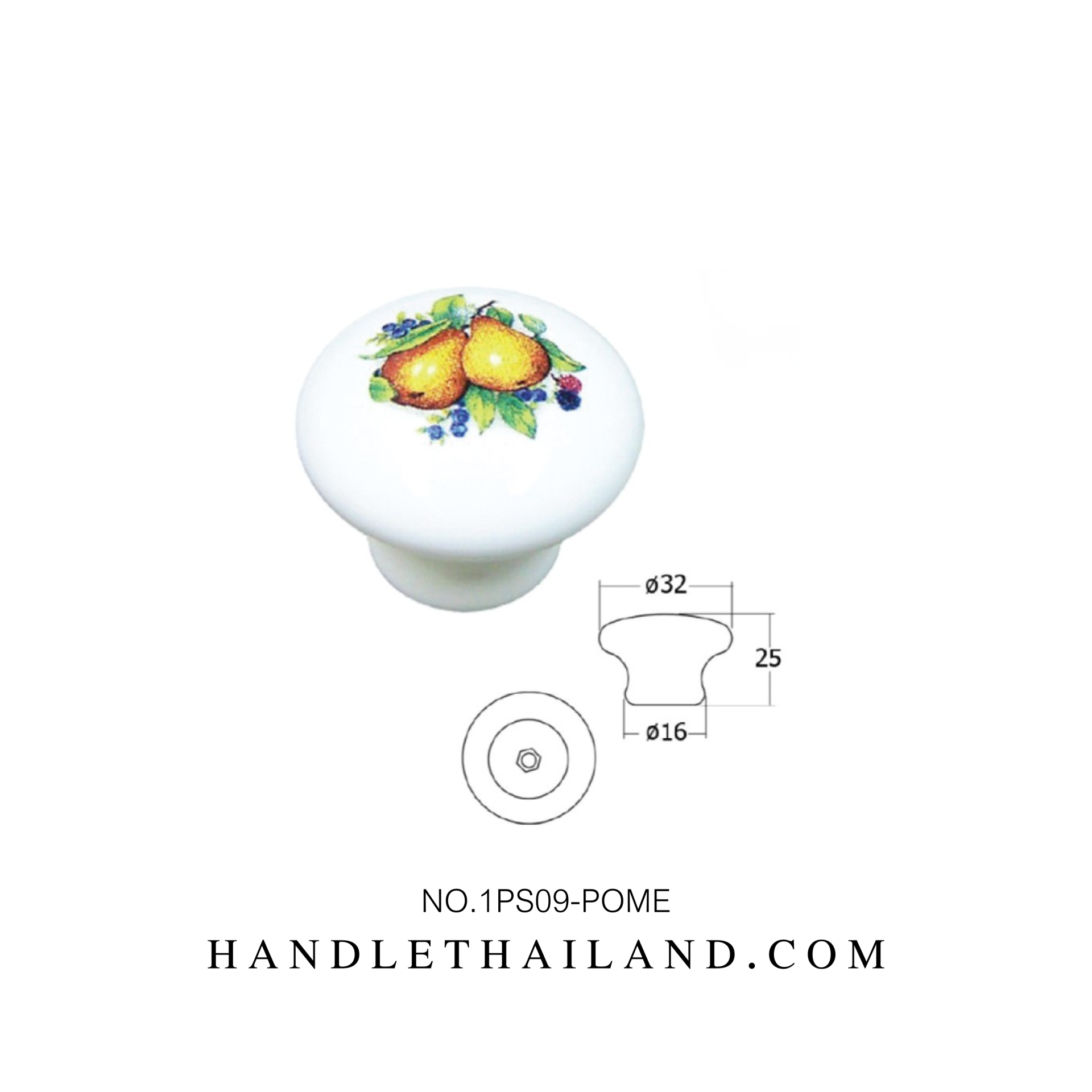 Futuretech ปุ่มจับ (เซรามิก) สีขาว 32x25 1PS09-POME
